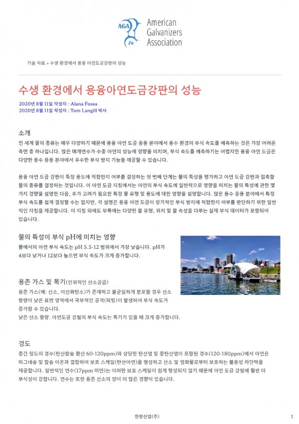 수생환경에서의아연부식성능