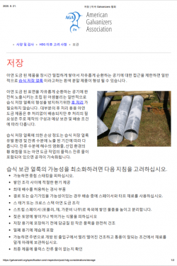 도금제품의 보관 및 저장 - [미국용융아연도금협회]